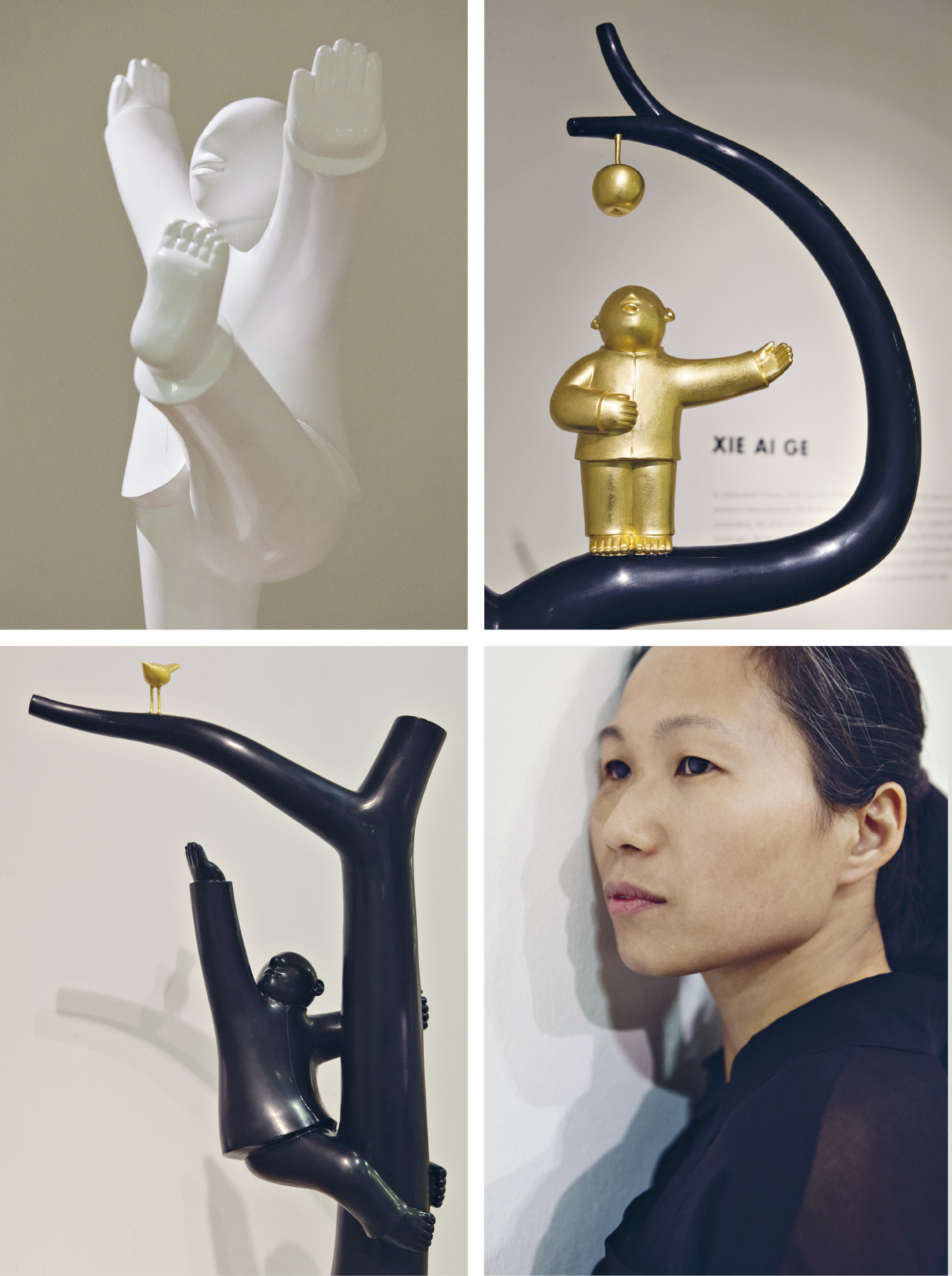 2009年,谢艾格以雕塑创作了《太极》系列。对她而言,太极是一种心态,一种宇宙能量,一种生活态度,蕴藏中国哲学概念里的道教。她雕出太极的潇洒、恬静。跟别人不同的是,她的雕塑均有可爱的一面。