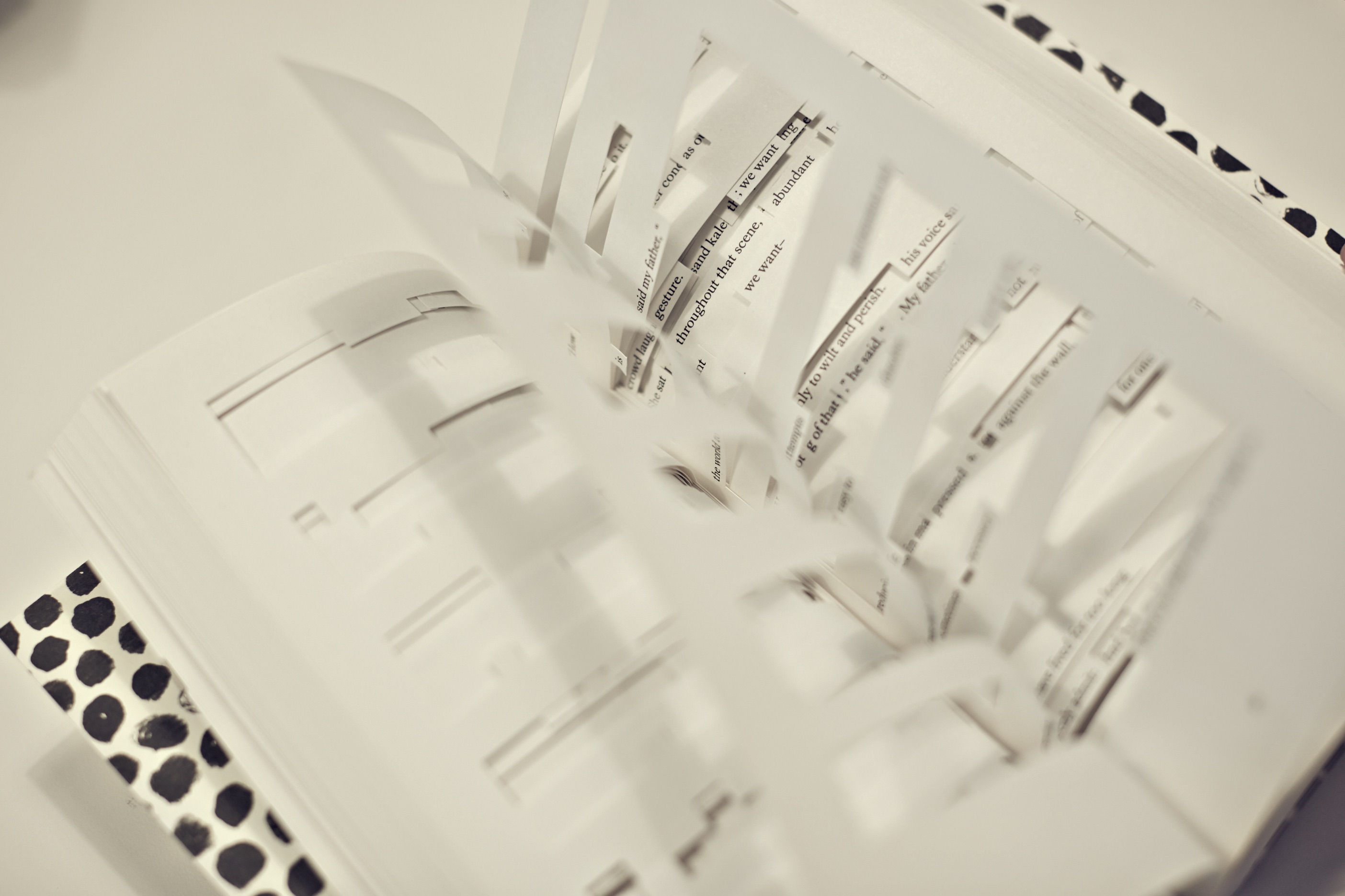 一本他喜爱的书——Jonathan Safran Foer著作的《Tree of Codes》。外观不怎么样,谁知道一打开书本,每一页字里行间,出现大小长方形洞,乍看似支离破碎。